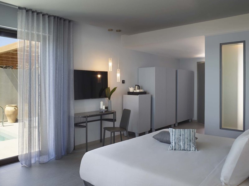 In den Zimmern gibt es eine Klimaanlage und eine Heizung. Die Gäste können den Meerblick von Balkon oder Terrasse genießen. Die Zimmer verfügen über ein Kingsizebett und ein Sofabett. Es sind separate Schlafzimmer vorhanden. Auch Baby- und Zustellbetten können zur Verfügung gestellt werden. Außerdem sind ein Safe, eine Minibar und ein Schreibtisch verfügbar. In der Kochnische befinden sich ein Minikühlschrank und eine Tee-/Kaffeemaschine. Hinzu kommen eine Waschmaschine und eine Hosenpresse. Darüber hinaus sind ein Telefon, Sat-TV, ein Steckdosenadapter und WiFi vorhanden. Zu den Vorzügen der Zimmer gehören Hausschuhe. Die Badezimmer sind ausgestattet mit einer Dusche und einer Badewanne. Für den täglichen Gebrauch stehen ein Haartrockner, ein Kosmetikspiegel, Bademäntel und ein Telefon zur Verfügung. Als Besonderheit genießen die Gäste in den Badezimmern Kosmetikartikel und eine Auswahl an Handtüchern. Buchbar sind rollstuhlgerechte Zimmer. Das Resort bietet Familien- und Nichtraucherzimmer.