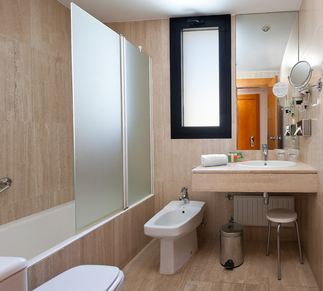 Air conditioning and central heating ensure that rooms maintain comfortable temperatures. Guests can enjoy the view of the courtyard from a balcony or terrace. Rooms have a double bed, a queen-size bed or a sofa bed. Extra beds can be requested. A safe, a minibar and a desk are also available. Additional features include a refrigerator, a mini fridge and a tea/coffee station. A direct dial telephone, a television with satellite/cable channels, a radio, a games console, an alarm clock and WiFi provide all the essentials for a comfortable holiday. Bathrooms are equipped with a shower, a bathtub and a bidet. For additional convenience, bathrooms also provide a hairdryer. As a special feature, bathrooms are also stocked with cosmetic products and a selection of towels. The hotel has 75 non-smoking rooms.